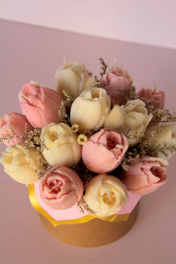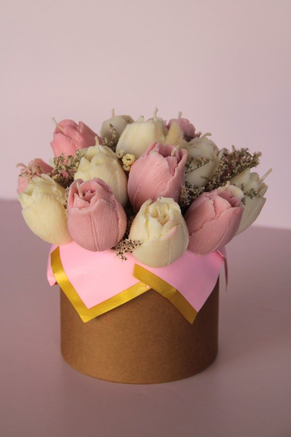 Un ramo eterno de tulipanes hecho vela.