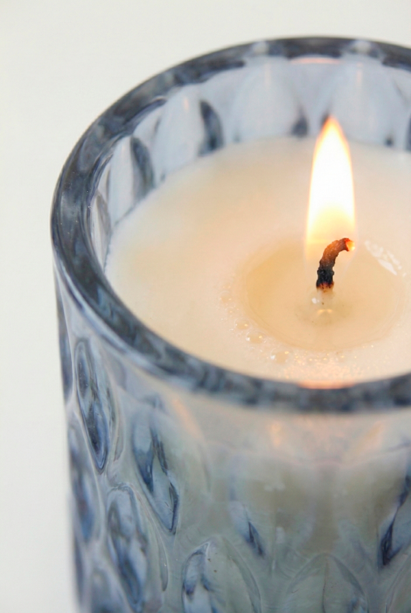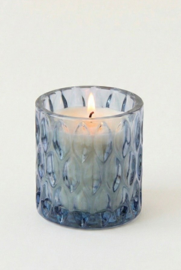 Vela de cera de soja en envase labrado brillante importado AZUL TORNASOL