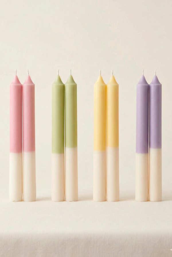 EL bitono es realizado con una tecnica artesanal, por lo que puede variar la altura de vela en vela, o presentar un leve blendeo de los colores en la unión!